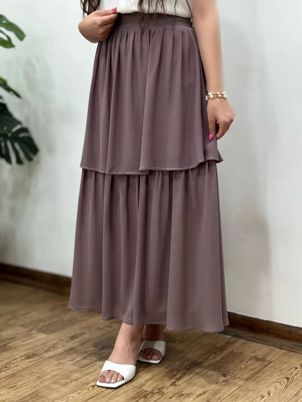 2. دامن حریر ساده: انتخابی شیک برای محیط‌های رسمی یا نیمه‌رسمی.